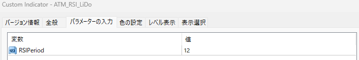 RSIPeriod 12 RSIの期間 RSI を計算する本数。小さくすると反応は速くなるがダマシが増えやすい。大きくすると滑らかで遅行。