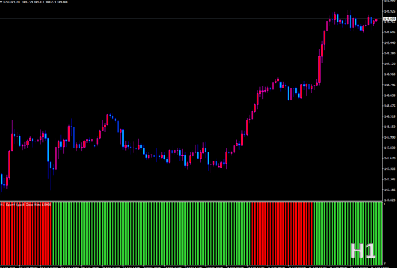 • 赤から緑へ変わった直後に買い、緑から赤へ変わった直後に売り。
