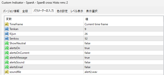 MT4:SPAN A – SPAN B CROSS HISTO NMC 2 一目均衡表のクロスを検出して表示するインジケーター
