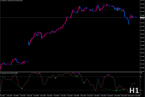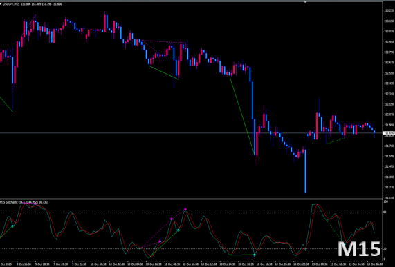 - MTF(マルチタイムフレーム):下位足チャートに上位足のStoch×乖離を重ねて表示