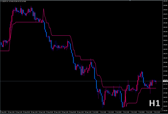 価格の動きに合わせて自動で追随するストップ水準(ライン)を描くインジケーターです。