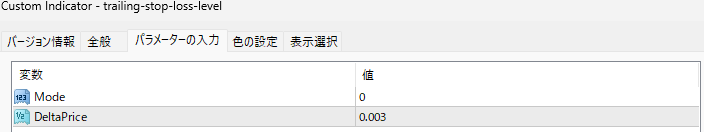 DeltaPrice トレーリング距離 0.003 ラインを価格からどれだけ離すかを指定します。