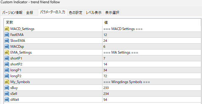 Trend Friend Follow パラメーター(和訳と解説)