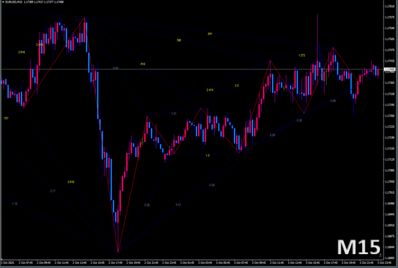 - 各脚のフィボ比率を計算し、PRZ(Potential Reversal Zone=反転候補帯)を表示します。