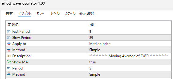 Description ************ Moving Average of EWO ************ 説明 区切り用の説明文(設定値ではありません)。