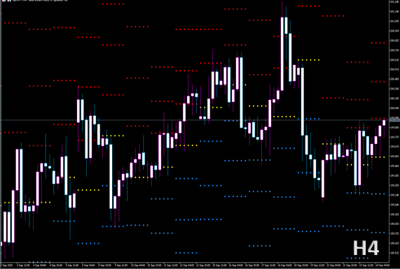 相場がどこで止まりやすいか/走りやすいかを、前日の高値・安値・終値から算出して水平ライン(S1~S3/PP/R1~R3)として表示するトレーディング指標です。