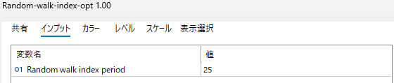 RWI(ランダムウォーク指数)の計算に用いる期間。 過去25本のローソク足を基準に、相場がランダムかトレンドかを判別します。 |