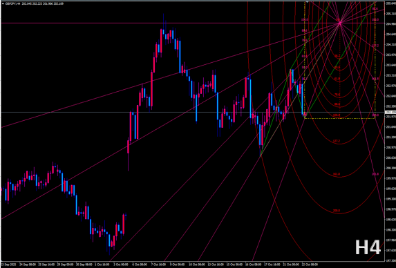 | チャート表示 | 黄金比スパイラル(円弧)+放射線(角度線) |