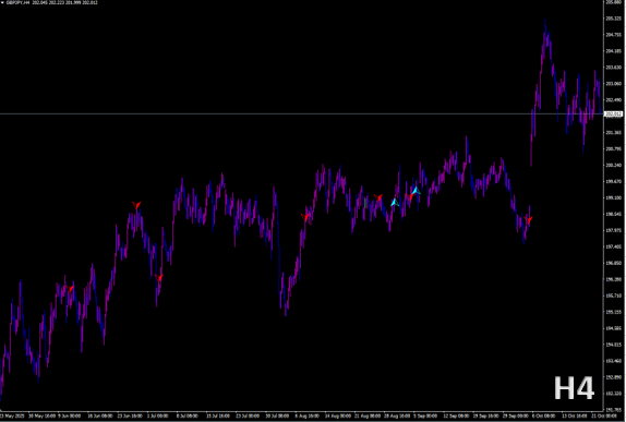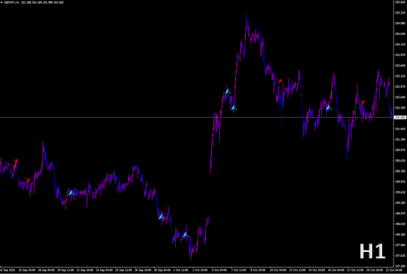 - 水色の上向き矢印 → 買い(上昇)サイン