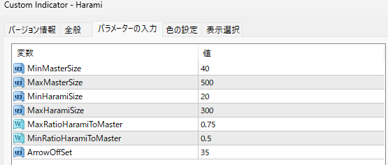Harami(ハラミ)は、ローソク足の組み合わせパターンである「ハラミ足(はらみ線)」を自動的に検出するインジケーターです。