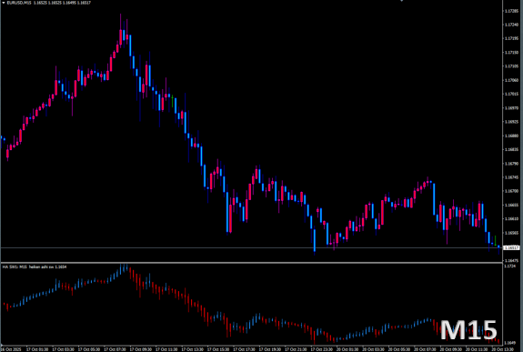 例:M15チャートにH1平均足を表示。