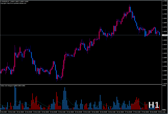 Heiken Ashi Histogram(ヘイキンアシ・ヒストグラム) は、平均足(Heiken Ashi)のトレンド方向と強弱を、チャート下部の棒グラフで視覚化するインジケーターです。