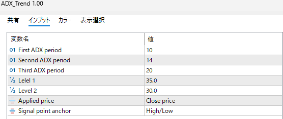 Average Directional Index Trendは、トレンドの「強さ」と「方向性」をドット(点)で示す視覚的なトレンドフォロー型インジケーターです。