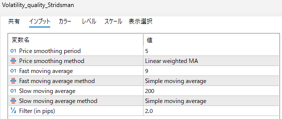 MT5:VOLATILITY QUALITY STRIDSMAN トレンドの質を測定するインジケーター
