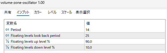 出来高の平均化に使用される基準期間。 数値を小さくすると反応が速くなり、数値を大きくすると滑らかになります。 デフォルト値「14」は短期トレード向け。 |