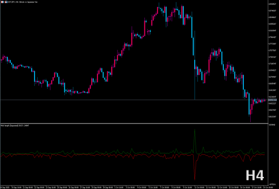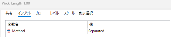 | Method | 計算方法/表示モード | Separated | 上ヒゲ(売り圧)と下ヒゲ(買い圧)を分離して2本のラインで描画します。 緑=下ヒゲの長さ、赤=上ヒゲの長さ。買い/売りの圧力バランスを直感的に比較できます。 |